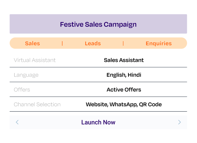 Turn every campaign and touchpoint into an interactive, AI-led experience with virtual hosts, GenAI bots and rich visual journeys across web, WhatsApp and in-store.