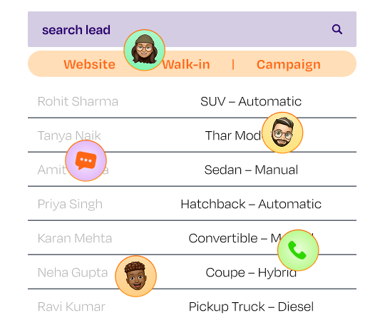 Embed AI agents or GenAI bots on your brand and dealer websites or apps to greet visitors, answer initial questions and capture high-intent leads. Instead of static forms, prospects go through guided conversations that extract context like budget, use case, preferred model etc. so leads passed to sales are richer and more actionable.